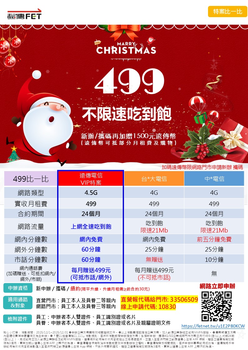 轉知遠傳電信【新北市政府_耶誕特案】福利資訊