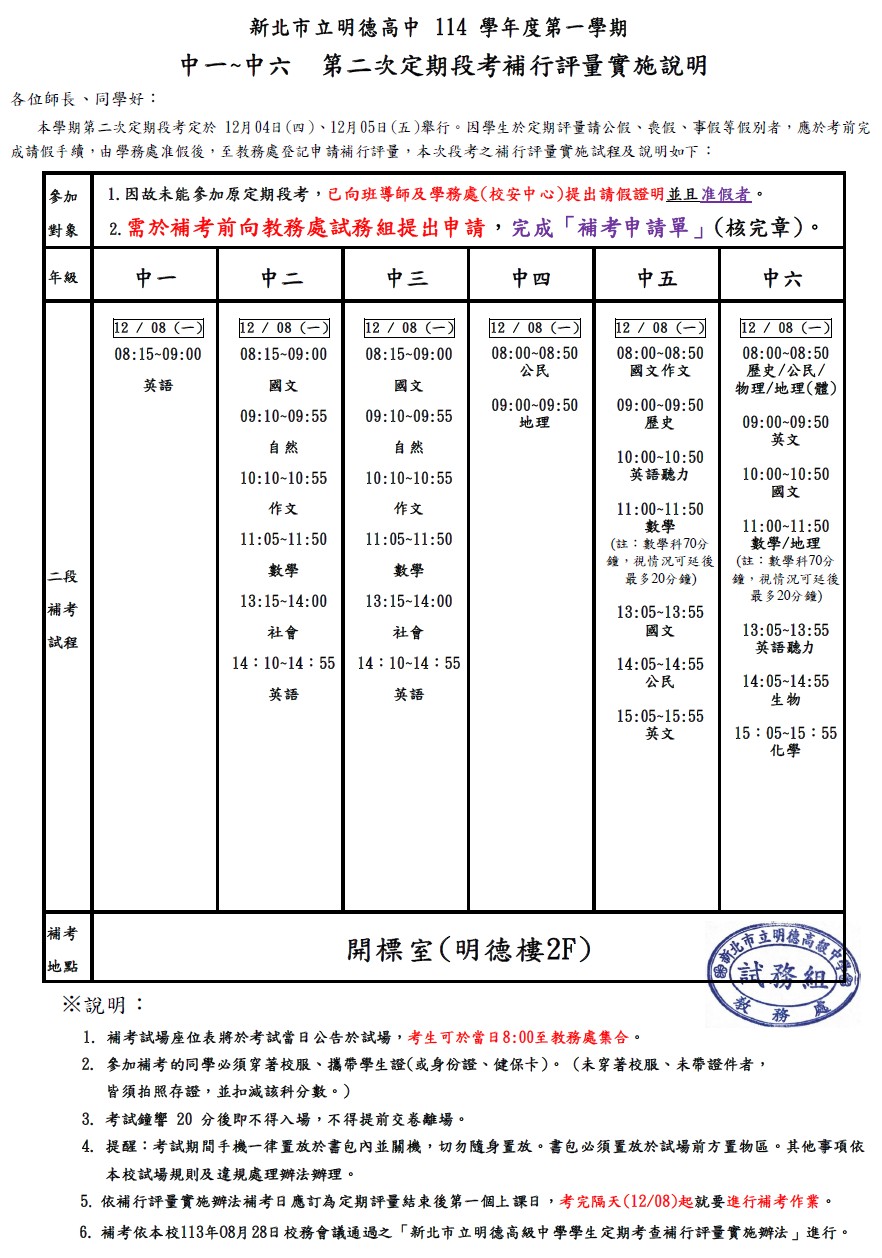 12/08( 一 )、12/09( 二 )前勿發卷、檢討、公告答案卡成績須遮蔽上方解答